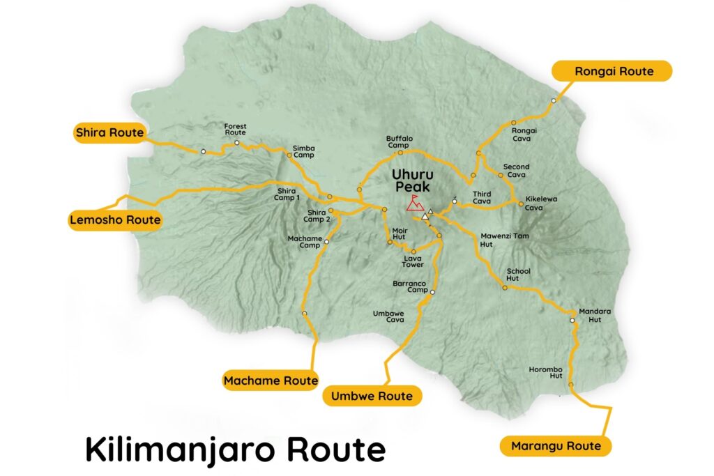 Map of All Routes on Kilimanjaro & Short Description
